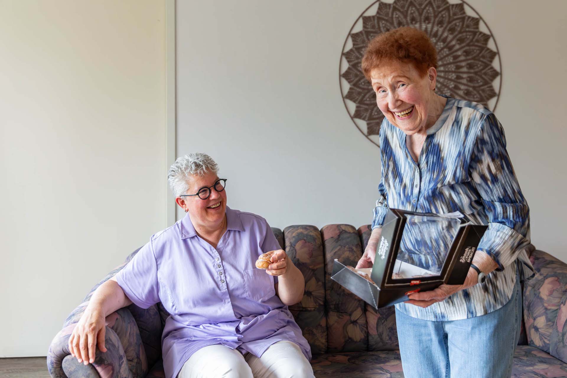 Toch bleef de zorg trekken. Gelukkig ontdekte ze de Flexpool van Sensire. “Nu combineer ik het beste van twee werelden,” vertelt Veronique. Eén dag per week werkt ze als pedicure, de rest van de tijd is ze als verzorgende IG actief in de wijk via de Flexpool. “Het mooie is: ik plan mezelf gewoon in wanneer het mij uitkomt. Ik open het rooster, klik een dienst aan die past en die is dan meteen voor mij gereserveerd. Ideaal!” Zo houdt ze de volledige regie over haar werkweek. Meestal werkt ze in de buurt van Groenlo, maar een ritje naar Doetinchem? Ook prima. “Die vrijheid is echt fijn.”