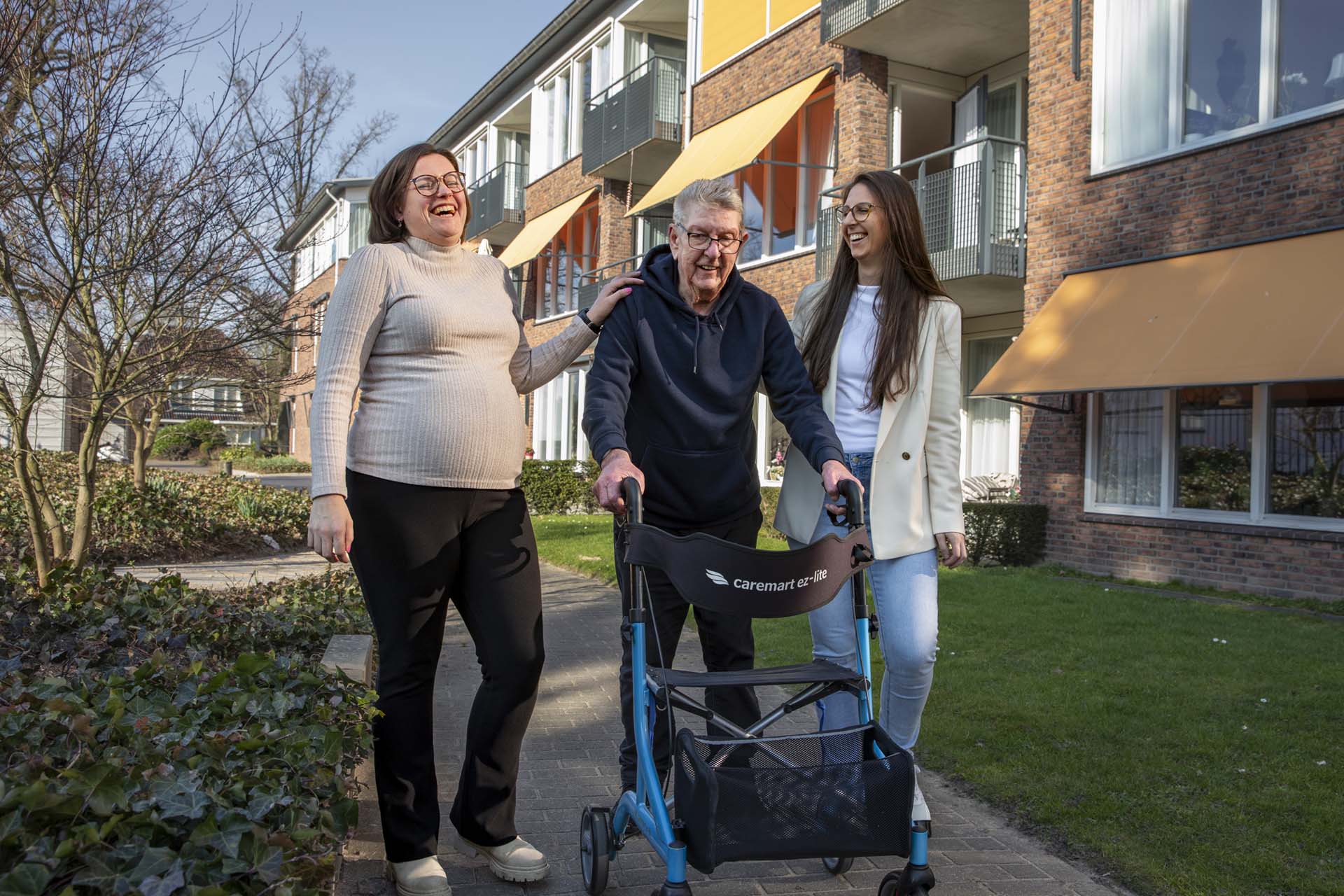 De uitdaging naar de toekomst ziet Inez eigenlijk wel positief tegemoet. “Dat heeft zeker ook te maken met hoe ik in het leven sta. Ik heb geleerd uitdagingen om te zetten in kansen. Om nu en straks zorg te kunnen blijven leveren moeten we kritisch zijn op wat wij wel en niet doen. Hoe gek het misschien ook klinkt, ik zie en ervaar dat als kans. Als verpleegkundige merk ik echt een verschuiving van taken in de positieve zin van het woord. Ik ga mee op huisbezoek, krijg de mogelijkheid om te kijken naar de inzet van zorg op een dusdanige manier, dat het leuk blijft voor iedereen. Dus én voor de collega’s én voor de bewoners. Met behulp van familie en naasten.”