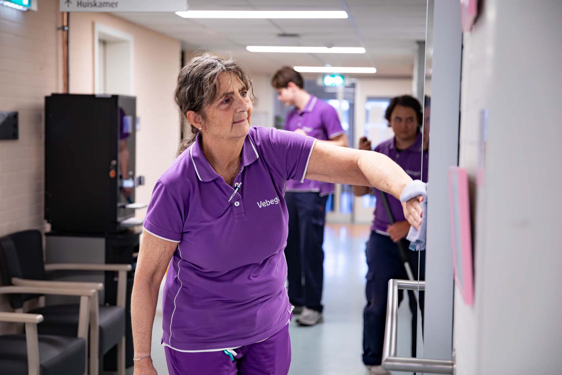 De Vebego Servicemedewerkers kunnen in overleg met de zorgteams ook aanvullende taken krijgen, werk dat de zorgmedewerkers ondersteunt. ‘Dan gaat het bijvoorbeeld om de wasverzorging of bedden verschonen. Dat verschilt, het is maatwerk. We helpen én denken er graag in mee,’ zegt Kimm. Gerard: ‘Zo ontzorgen ze onze zorgmedewerkers. Dat is zeker in deze tijd van arbeidsmarktkrapte en werkdruk heel fijn.’