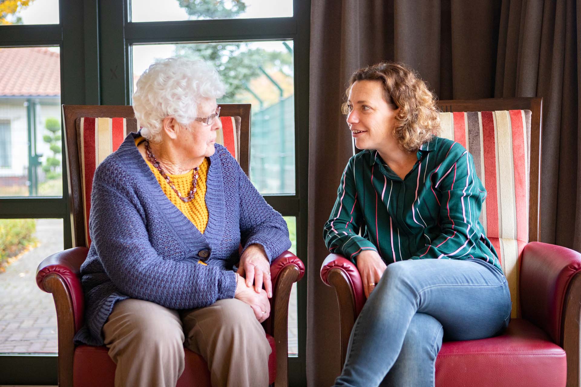 “Ik heb een fijne sta-opstoel kunnen overnemen om fijn vanuit de stoel televisie te kunnen kijken. En er staat nu een mooie bank om bezoek te kunnen ontvangen. Het is echt een eigen appartement met veel privacy. En je kunt lekker naar buiten kijken of gewoon naar buiten gaan. Het is een fijne plek, er is goede verzorging en good etten." “Ja, het eten is misschien te goed,” grapt zijn dochter. Lees het verhaal van meneer Jansen en zijn dochter over het wonen en leven op Sensire De Schoven.