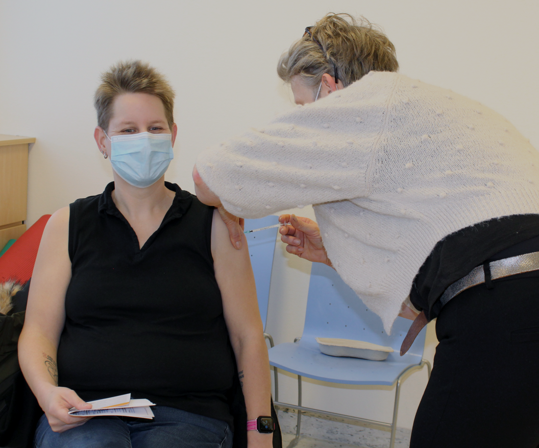 Ellen: “Jelly Hamberg, de relatiemanager van Sensire, had contact met het SKB over de mogelijkheid om ook op die locatie medewerkers te prikken. Zo was er met De Lunette in Zutphen, Oldershove in Wehl, en dan het ziekenhuis in Winterswijk een mooie spreiding van vaccinatie locaties over ons werkgebied. Het SKB stelde hun locatie beschikbaar, een mooie ruimte op een aparte plek met een eigen ingang. En ook stond hun medische achterwacht voor ons klaar en verleende de apotheek van het ziekenhuis medewerking aan het optrekken en klaarleggen van onze vaccins. Het prikteam kon een spuitje pakken en prikken, spuitje pakken en weer prikken en zo door. Een super samenwerking!”