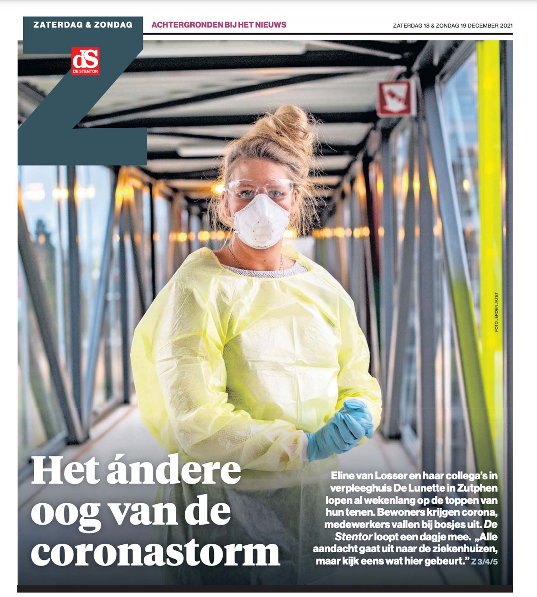 Verslaggever Niek Megens van dagblad De Stentor liep een hele dag mee met collega's Eline van Losser en Mieke Weikamp van afdeling Laarpoort van locatie De Lunette in Zutphen. Op 18 december verscheen zijn indrukwekkende reportage in de zaterdagbijlage van de krant.