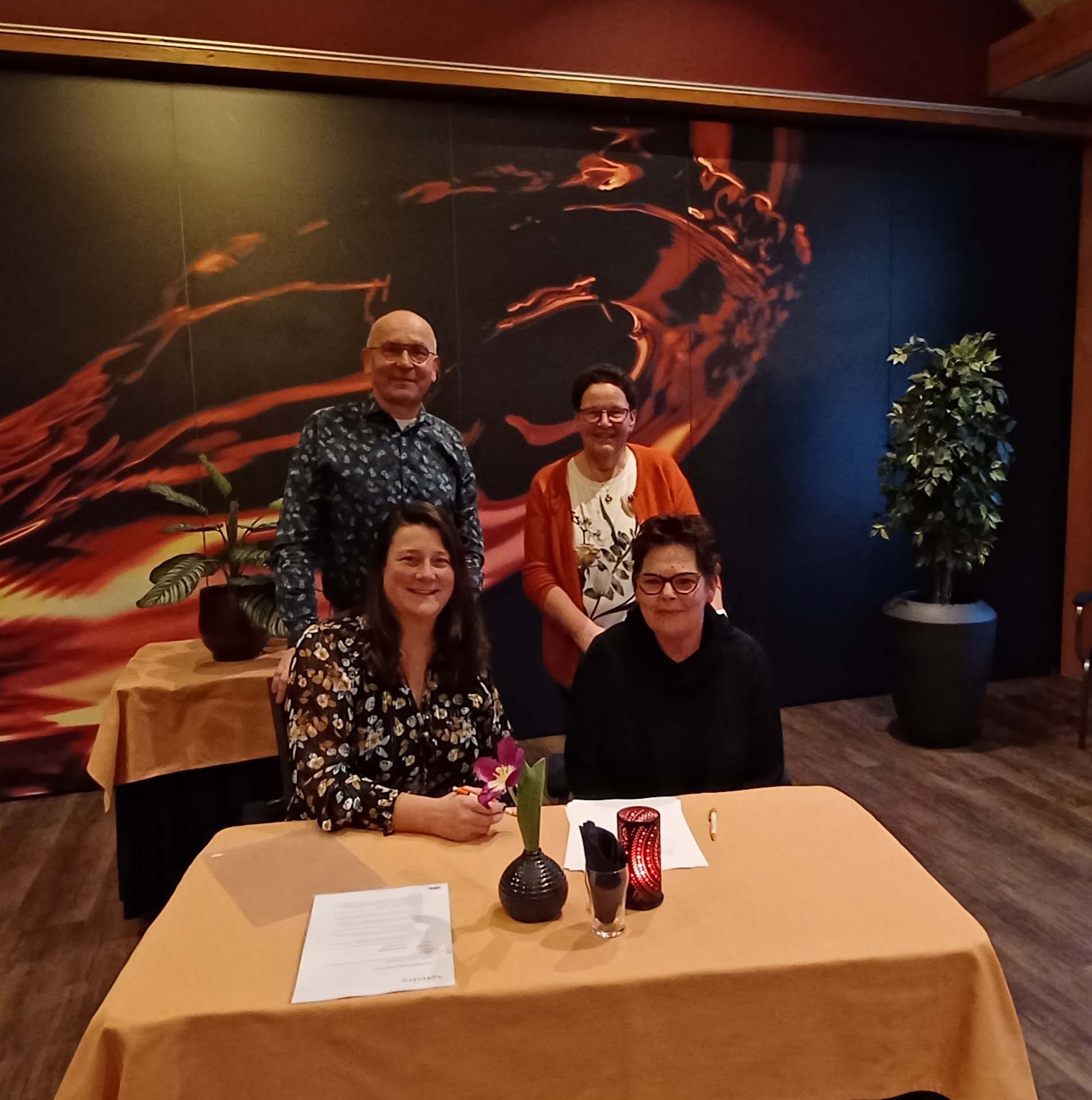 Op dinsdag 23 januari ondertekenden Alie Garssen, Wim Weenk en Margriet Kasteel namens de locatieraden en Janine Hidding namens de centrale cliëntenraad, en Margje Mahler namens de Raad van Bestuur de nieuwe inrichting van de cliëntmedezeggenschap binnen Sensire. De cliëntmedezeggenschap wordt geherstructureerd vanwege de overstap van het organiseren van zorg in zogenaamde klantlijnen naar regio’s sinds januari van dit jaar. Een mooie stap naar meer verbinding tussen klanten, bewoners en revalidanten (hierna te noemen ‘klant’), hun naasten, de zorgprofessionals van Sensire, maar ook met het zorgnetwerk rondom de klant buiten Sensire, zoals ziekenhuizen en huisartsen in de regio’s waarmee steeds meer wordt samengewerkt. En dat allemaal voor het bieden van de juiste zorg op de juiste plek, ongeacht of iemand thuis woont of (tijdelijk) verblijft op een van onze woonzorg- of revalidatie locaties. Iets wat de kwaliteit van zorg alleen maar ten goede komt en de cliëntenraad daarom alleen maar kan behartigen.