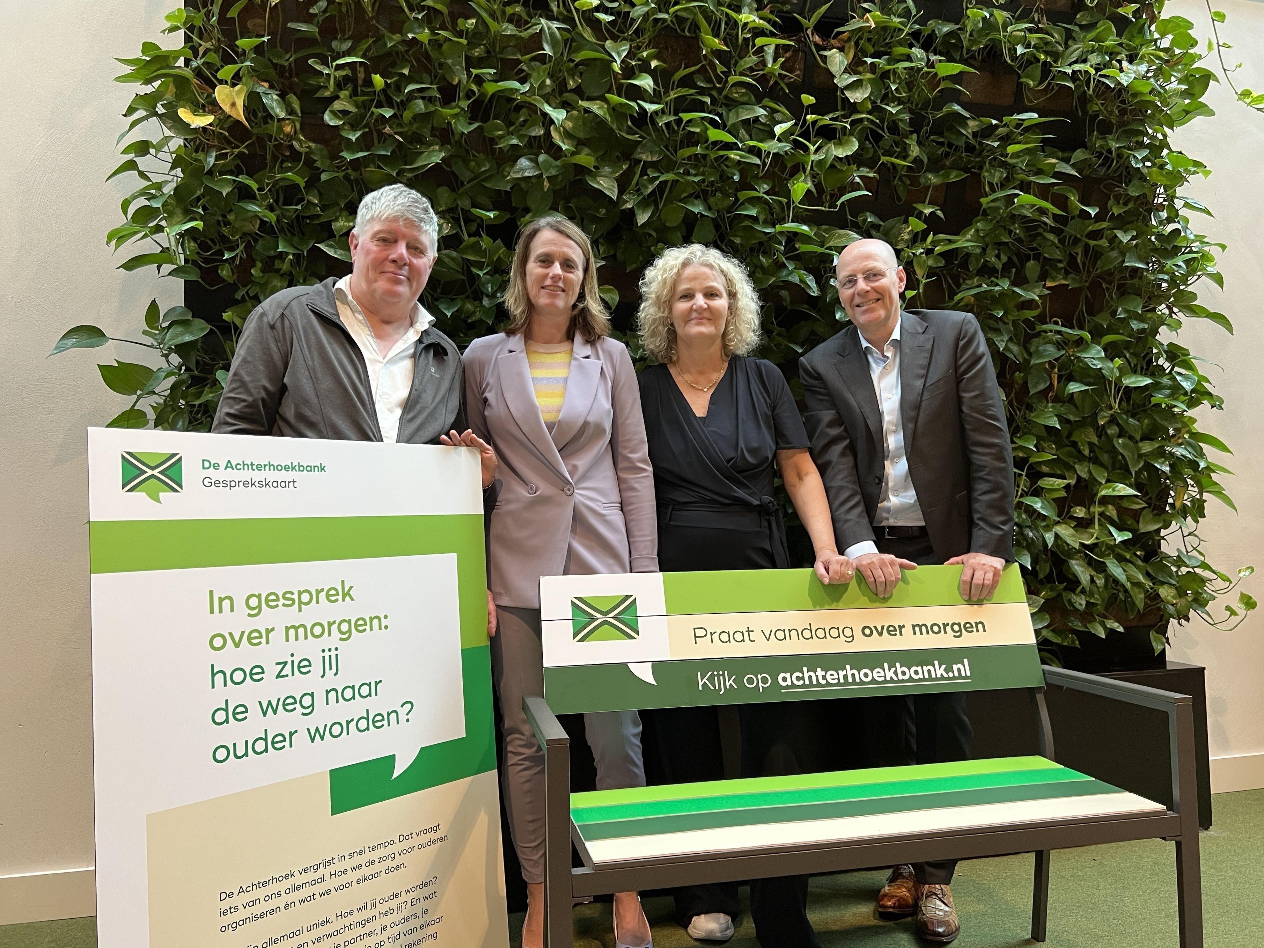 Onder het motto ‘Praat vandaag over morgen’ gaan de Achterhoekse ouderenzorgorganisaties Azora, Careaz, De Gouden Leeuw Groep, Marga Klompé, Markenheem en Sensire in gesprek met inwoners uit de regio. Geheel in stijl, op de Achterhoekbank. Een fijne plek om samen een goed gesprek te voeren. Afgelopen vrijdag 25 augustus gaf Achterhoeker Frans Miggelbrink het startsein van de campagne. Dat deed hij door samen met Anja Stunnenberg (één van de bestuurders) op de Achterhoekbank het gesprek te voeren over gelukkig ouder worden met behulp van een gesprekskaart, die vanaf nu ook te vinden is op www.achterhoekbank.nl.
